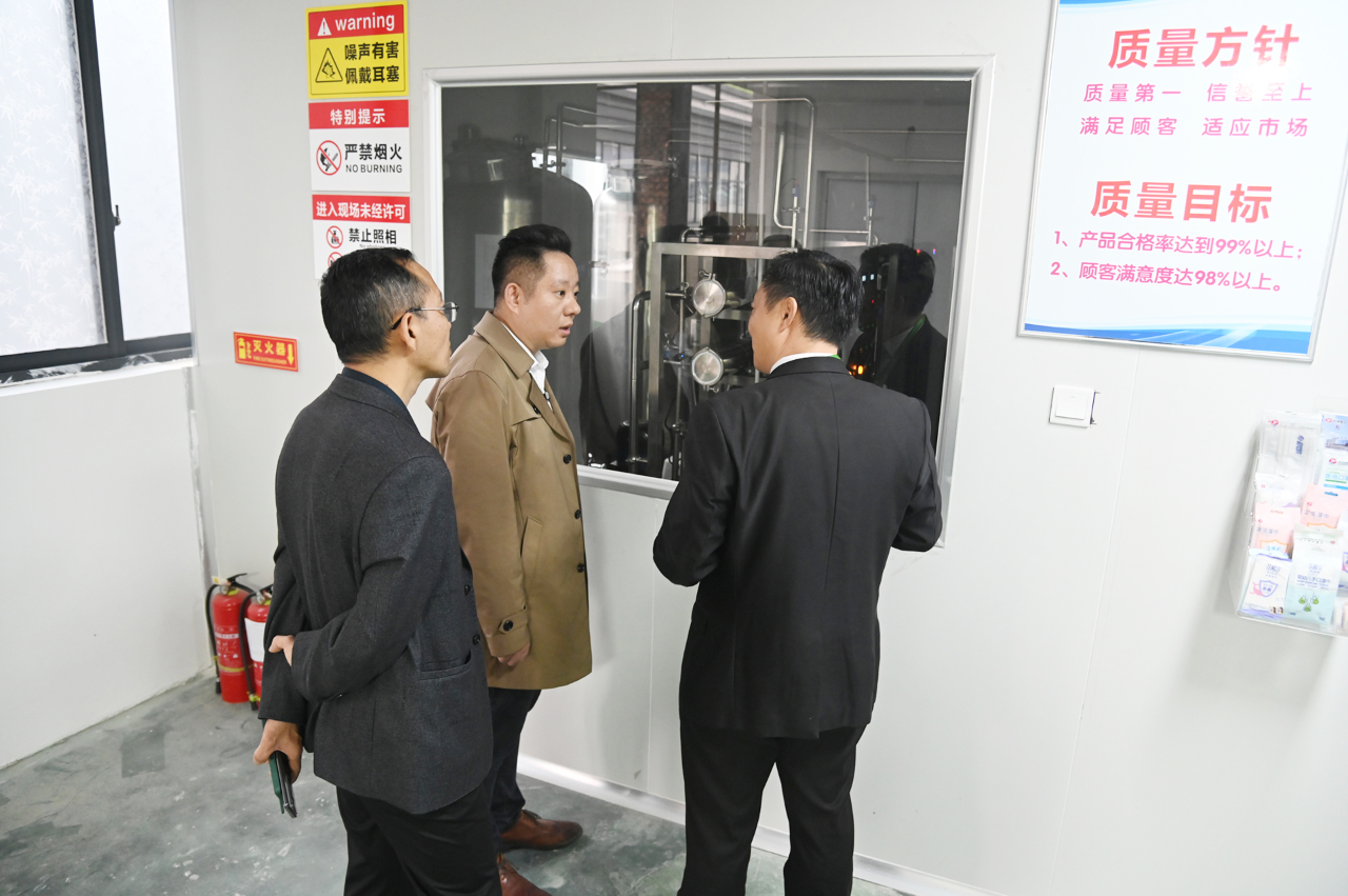 随后唐会长、吴执行秘书长等来到生产区域,实地参观企业生产情况。赵董向唐会长、吴执行秘书长等详细介绍产品的科技环保、安全性、健康性及设备的优势。