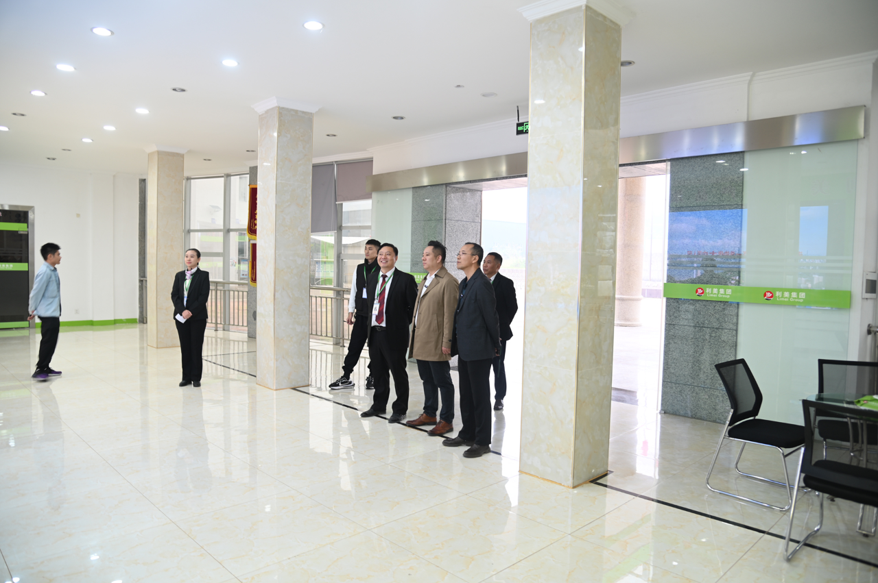 2023年10月26日下午,东莞市四川绵阳商会会长唐青松、东莞市四川绵阳商会执行会长兼秘书长吴永峰等莅临利美集团参观,利美集团董事长赵兴洪陪同参观。