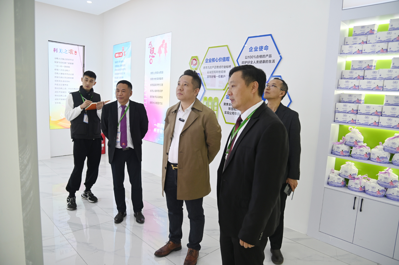 唐青松会长、吴永峰秘书长在赵董的陪同下观看了利美集团宣传片,详细了解企业的历史发展,企业文化,同行优势等方面。接着到三期展示厅,工作人员介绍利美集团:利美集团旗下拥有6家公司,境外2家(香港利美、越南安明);国内4家,四川利美、东莞利美、东莞馨美和中山利美。同时介绍了四川利美发展史:2020年初,新冠肺炎疫情爆发,在众多伸出橄榄枝的省份中,利美集团依然接受射洪政府之邀返乡支援家乡,积极相应党和家乡人民的号召。四川利美得益于射洪市委、市政府领导的关怀与帮助,四川利美得益于家乡人民的支持与厚爱,从投资注册,火速建厂,设备安装到生产仅用了7天。