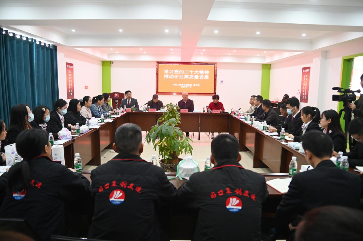 2023年11月6日上午 射洪市关工委执行主任税清亮、常务副主任庞明华、常务副主任城市企业关工指导组组长贺华荣、常务副主任谭月琴等一行对利美集团关心下代工作委员会进行授牌仪式及二十大会议精神宣讲活动,利美集团董事长赵兴洪、利美集团副总经理夏海燕、及利美管理层和员工参加会议。