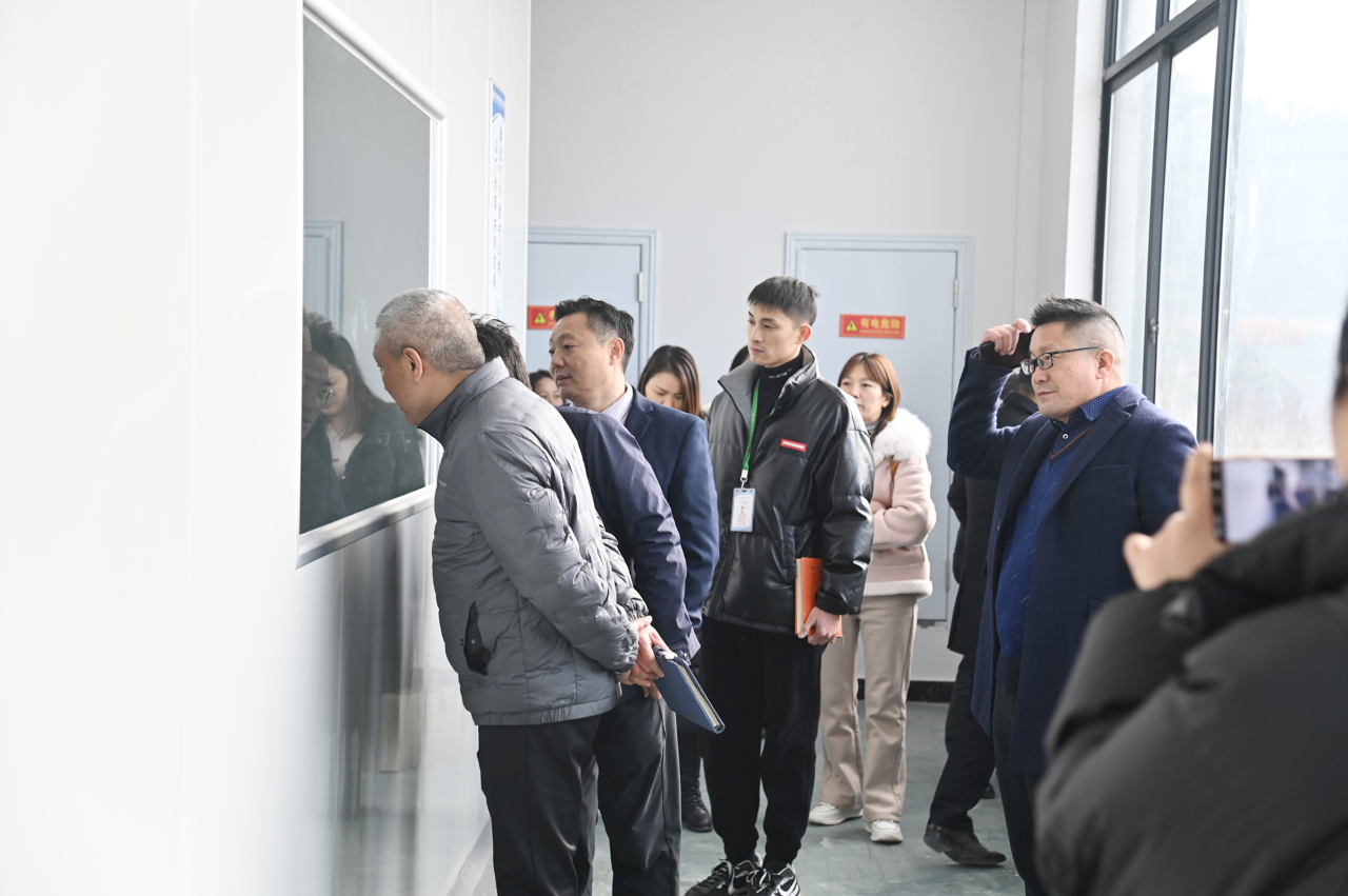 随后吴云风董事长、张迎春副总经理一行来到生产区域,实地参观企业生产情况。赵董向吴云风董事长、张迎春副总经理一行详细介绍产品的科技环保、健康性、安全性及设备的优势。