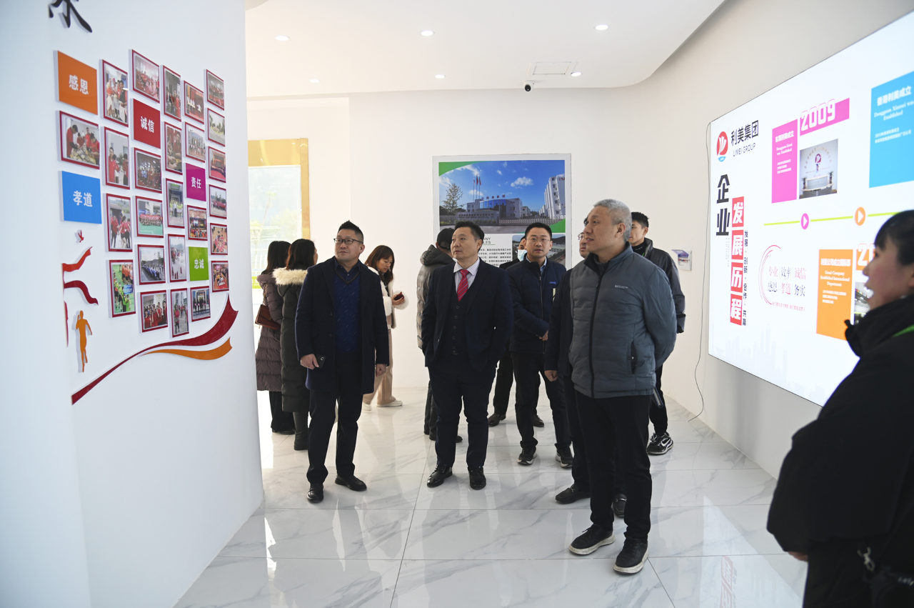 吴云风董事长、张迎春副总经理一行在赵董的陪同下观看了利美集团宣传片,详细了解企业的历史发展,企业文化,同行优势等方面。接着到三期展示厅,工作人员介绍利美集团:利美集团旗下拥有6家公司,境外2家(香港利美、越南安明);国内4家,四川利美、东莞利美、东莞馨美和中山利美。